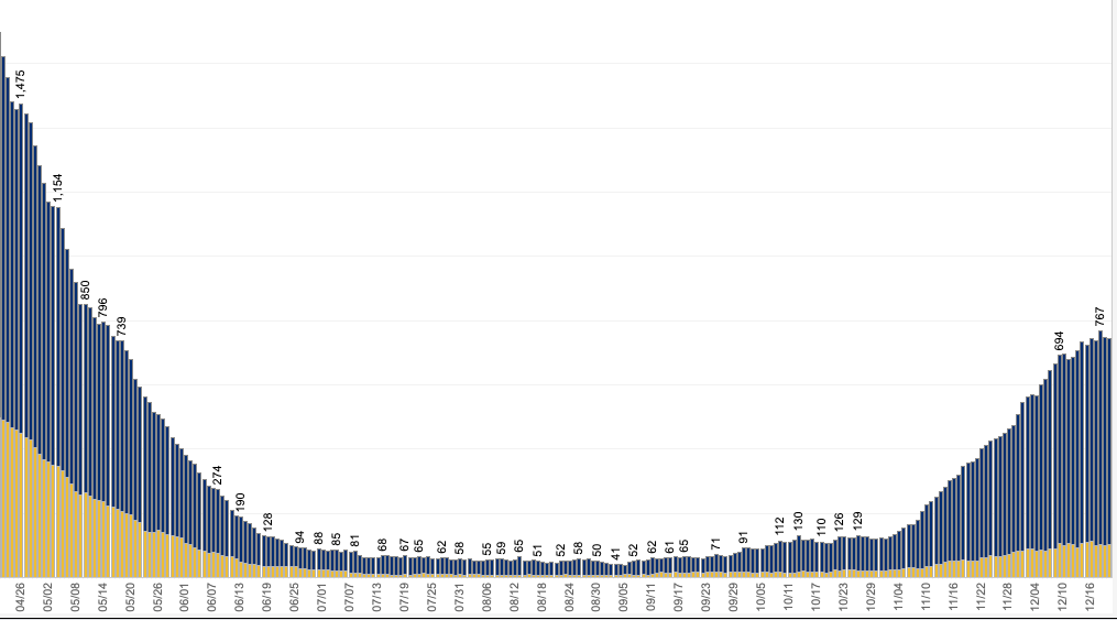 Hospitalizations, like deaths, are called "lagging indicators" because it takes 3-4 weeks after people get infected that those with severe cases of COVID-19 end up in the emergency room.