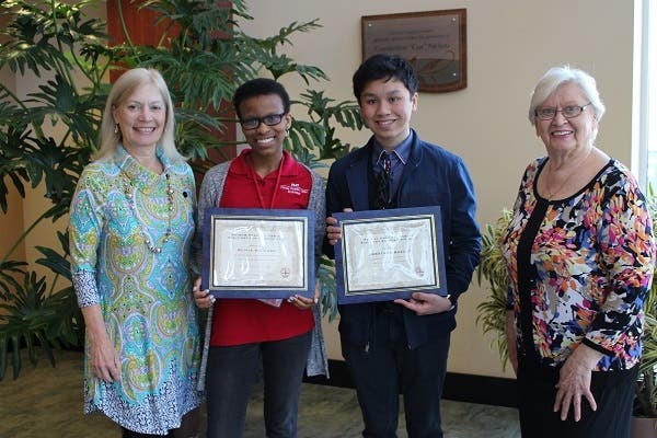 Junior volunteers Olivia Hillard and Jonathan Baccay each received $500 to go toward their educational pursuits.