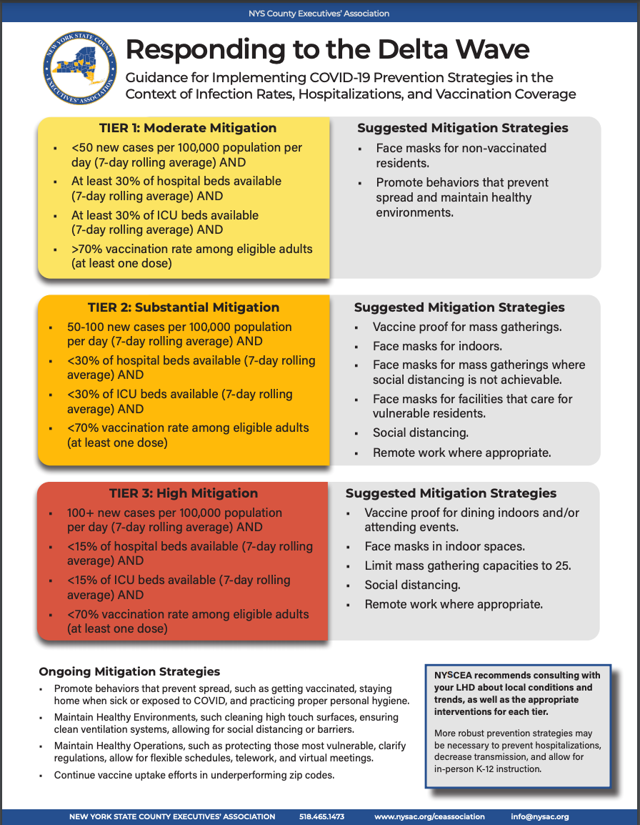 NYSCEA also emphasizes the importance of ongoing mitigation strategies — getting vaccinated, staying home when sick, social distancing and hand washing — to stop the virus from spreading.
