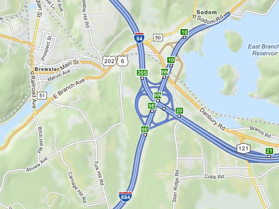 Motorists on westbound Interstate 84 wanting to travel south on Interstate 684 are advised to follow the marked detour, which will direct traffic from Exit 20 to go north on Interstate 684/Route 22, then to take Exit 10 (Route 6/202), turn right on to Route 6/202 West, and then turn right to enter Interstate 684 South.