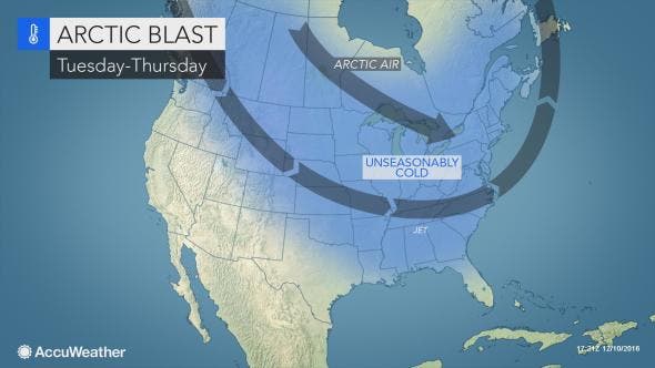 "The cold will be severe enough to bring the risk of frostbite or hypothermia to those spending time outdoors without proper clothing," said Renee Duff, AccuWeather meteorologist. "Residents should ensure pets have proper shelter and limit their furry friend’s exposure outdoors. Vehicles may need to be inspected for problems that can arise during extreme cold and residents should ensure that an emergency preparedness kit is handy in case of a break down on the highway."