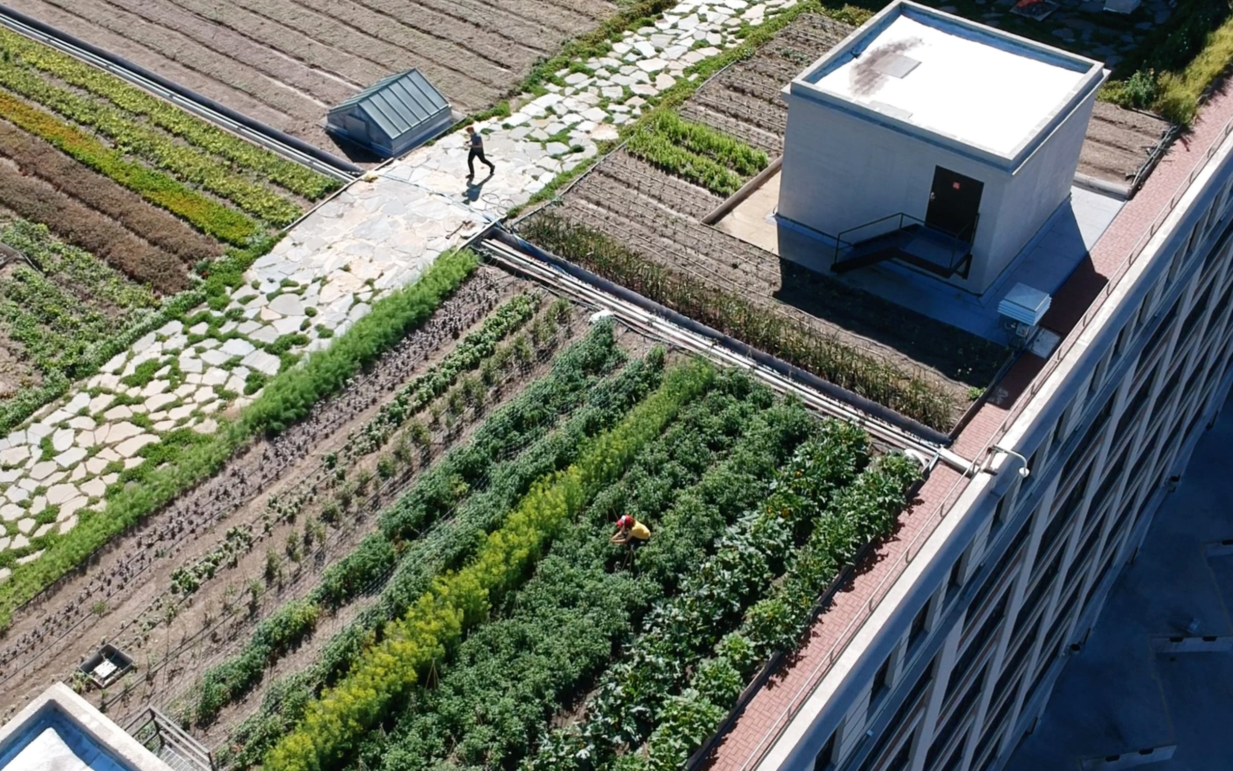 It includes 55,000 square feet of cultivated space, walkways that can store 10,000 gallons of rainfall and pathways made of 95 percent recycled materials. The 4,800-square-foot green house on the farm will help the company grow food year-round.