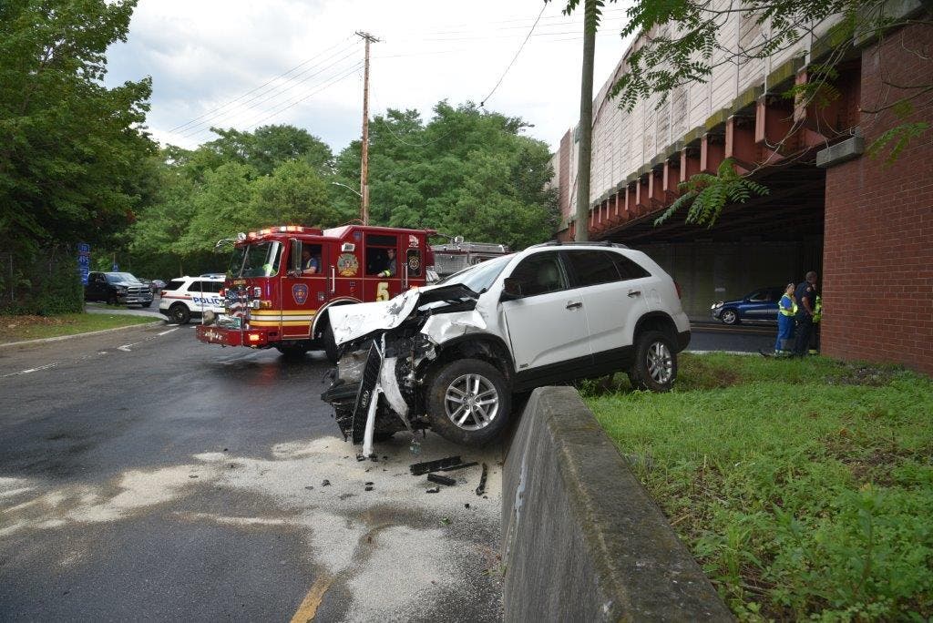 At 5:17 p.m., the Syosset Fire Department headed to the intersection of Angel Way and Woodbury Road following a report of a crash with multiple injuries. Arriving units found two cars had collided, resulting in two injuries and a large fluid spill.