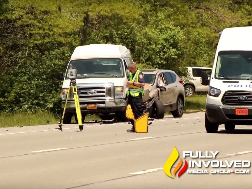 The ambulette driver and family member stopped on the shoulder of southbound Route 135, south of Jericho Turnpike, to discuss the route they would take. The driver of the ambulette left the vehicle. Someone driving a third car, an Infiniti G37 according to Newsday, sideswiped both cars and struck the man, who was declared dead at the scene. Police did not identify the victim. The third car's driver remained at the scene.
