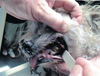 The dog's hair was covered in feces and many of its teeth were falling out.