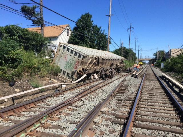 Trains can only operate on one track of the two tracks through the derailment area west of Hicksville.
