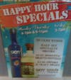 Happy hour specials are served at the bar during the week from 4:00pm until 7:00pm and again from 9:00pm to 11:00pm; Friday happy hour runs from 3:00pm until 7:00pm only. Featured happy hour specials include $2.00 domestic drafts and bottles and $4.00 import and craft beer drafts.