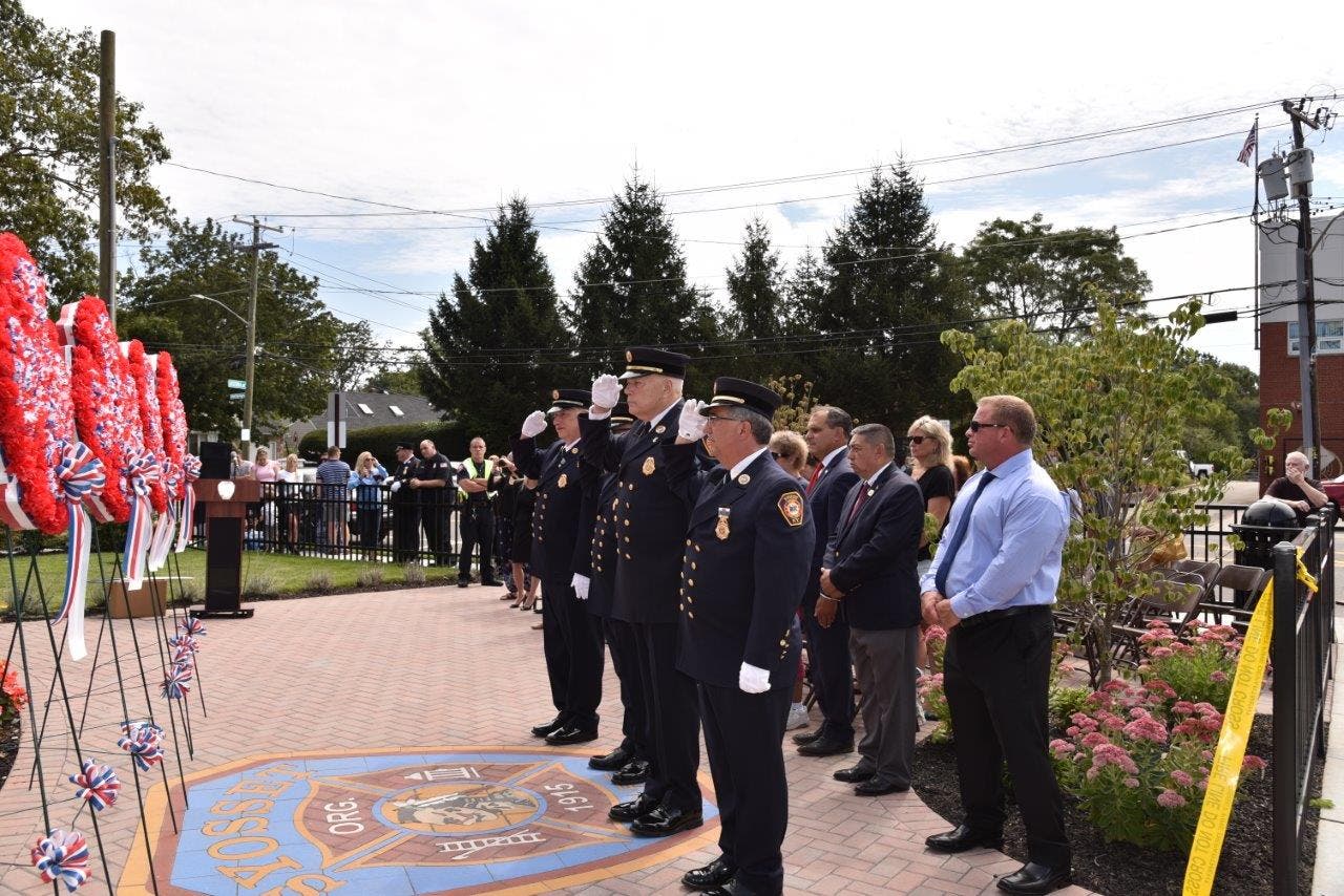 The emotional ceremony, held in the park across from the Syosset Fire District's headquarters, began around 11:30 a.m. Sunday.