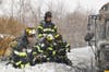 Chief Robert Kaplan was first to arrive at the scene. Engine 584, the first to arrive, stretched a hose line from the front bumper and extinguished the fire with the assistance of the crews of Engines 583 and 585, as an ambulance stood by in case of injuries.