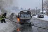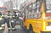Syosset firefighters extinguished a large school bus fire outside of the Variety Learning Center at Humphrey Drive Wednesday evening at approximately 4 p.m.