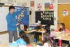 During a recent visit to South Grove Elementary School, CSHL educator Gregory Reilly taught students about the structure of a DNA molecule using a double helix model before leading them in the construction of their own models. Students reviewed the six parts that make up a DNA molecule and used worksheets to identify the different components of an animal cell.