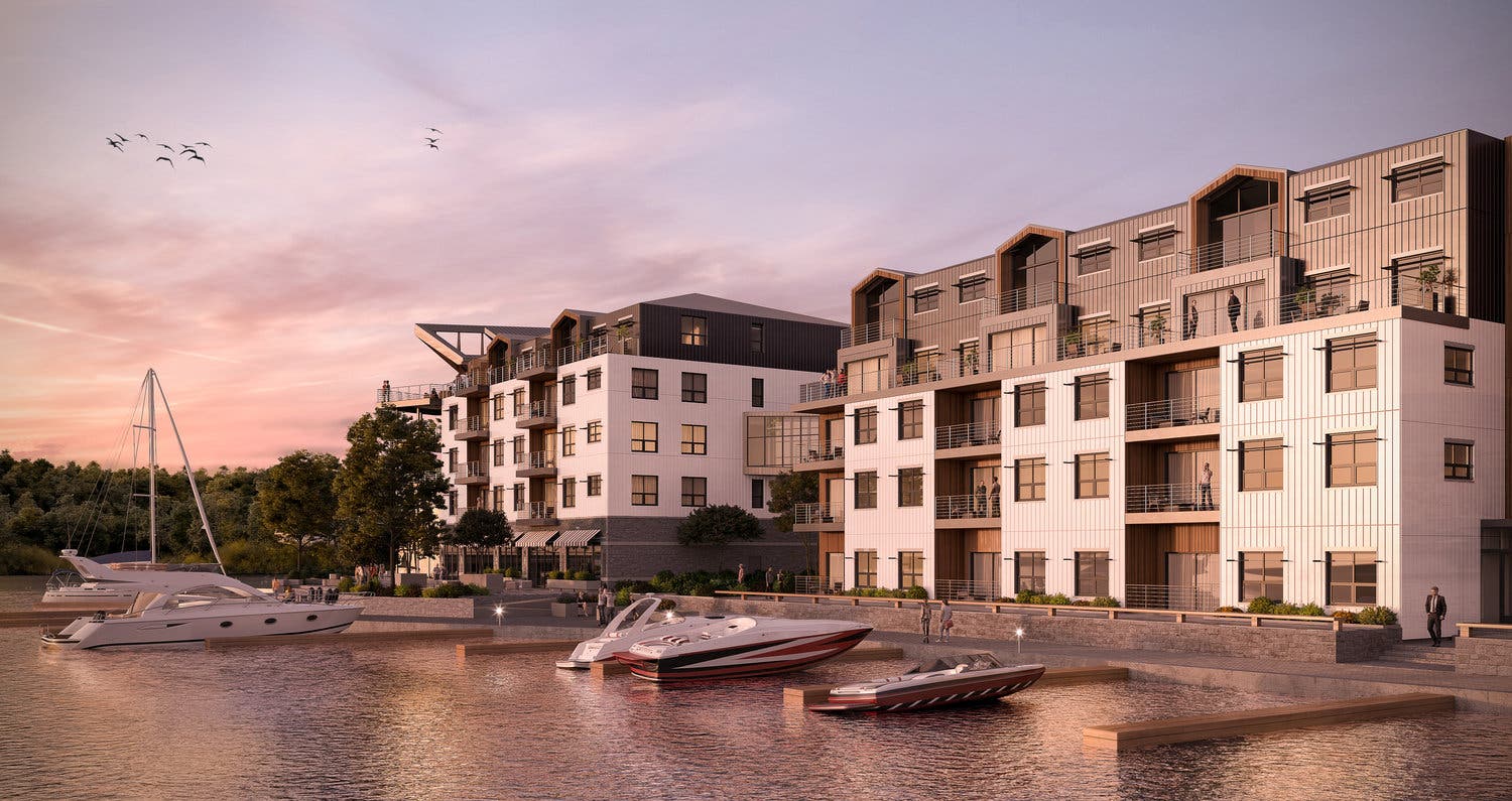Upon completion, the residential complex at 101 Pier Road in Ithaca, N.Y., formerly the site of Johnson Boat Yard, will include 156 one- and two-bedroom residential units with a wellness center and amenities. These include a full-service restaurant with indoor and outdoor waterfront dining, improved boating and golfing amenities and access to the new Guthrie Medical Office building. City Harbor’s heating and cooling will also be powered by an advanced, effluent-based system.