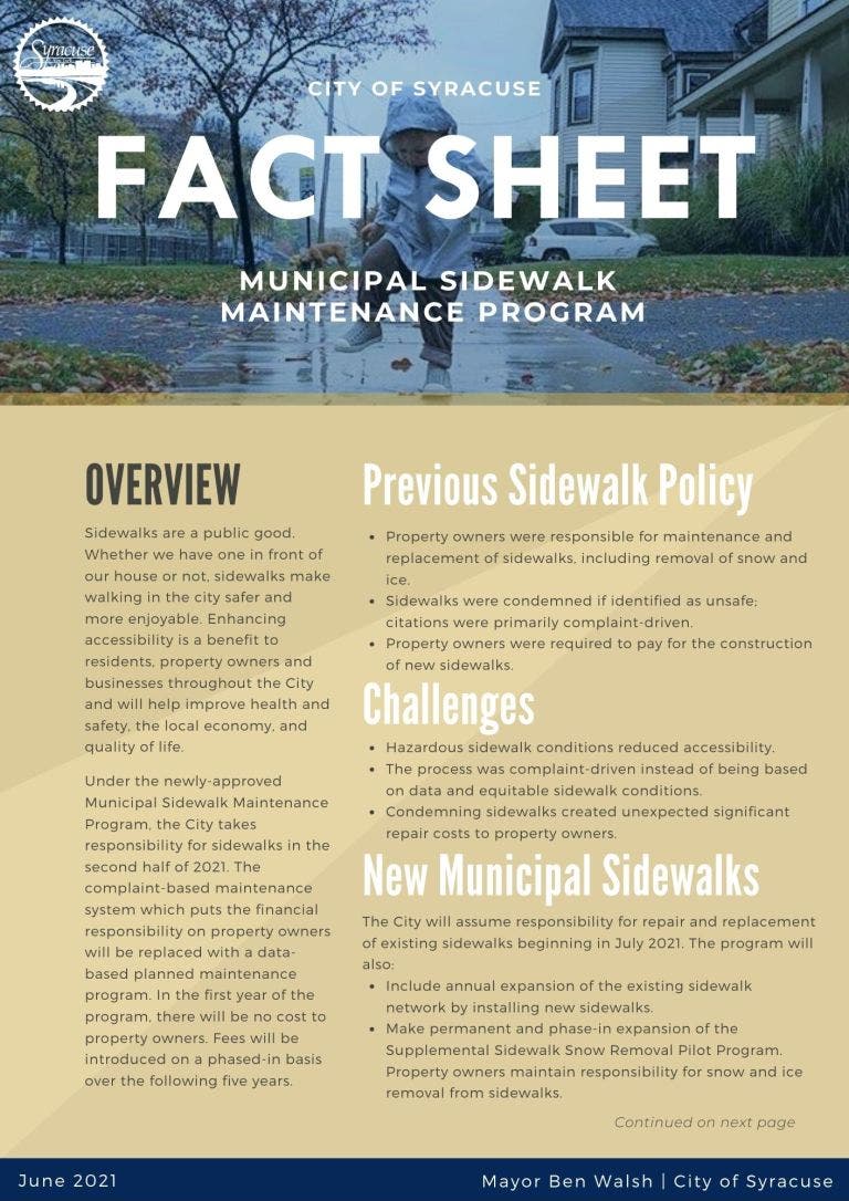 Fact Sheet: Municipal Sidewalk Maintenance Program In Syracuse