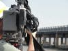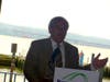 Samuels, speaking from the overlooking the Hudson's banks, pointed behind him, where state barges are currently to prepare for a new span.