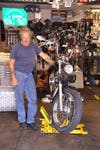 Self-trained as a mechanic, he currently sells, repairs, restores and customizes motorcycles for a diverse and loyal clientele. His customers range from avid collectors to people who rely on their motorcycle for basic transportation. Restoration is the favorite part of his work day and his personal favorite bike is the 1947 Harley Knucklehead.