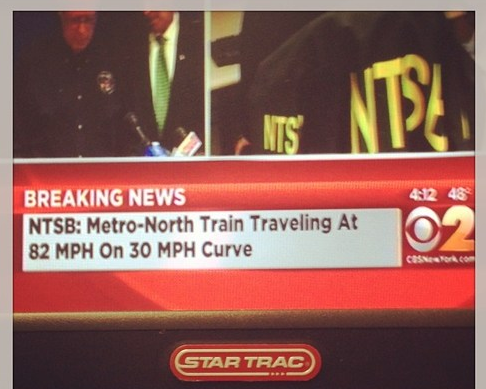 The National Transportation Safety Board examined the two event recorders and reports that the Metro-North train was going a staggering 82 miles per hour while entering a 30 mph bend when it derailed.