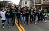 1)Mustangs take their lumps in Stanford. 2) Girls compete in Teaneck, NJ. 3) St Patrick's Day Parade. 4)Girls relax between games.