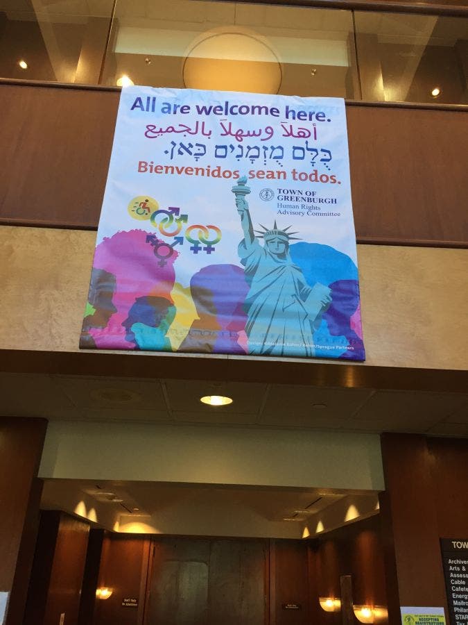 Supervisor Paul Feiner said a banner was put up welcoming people of different cultures.