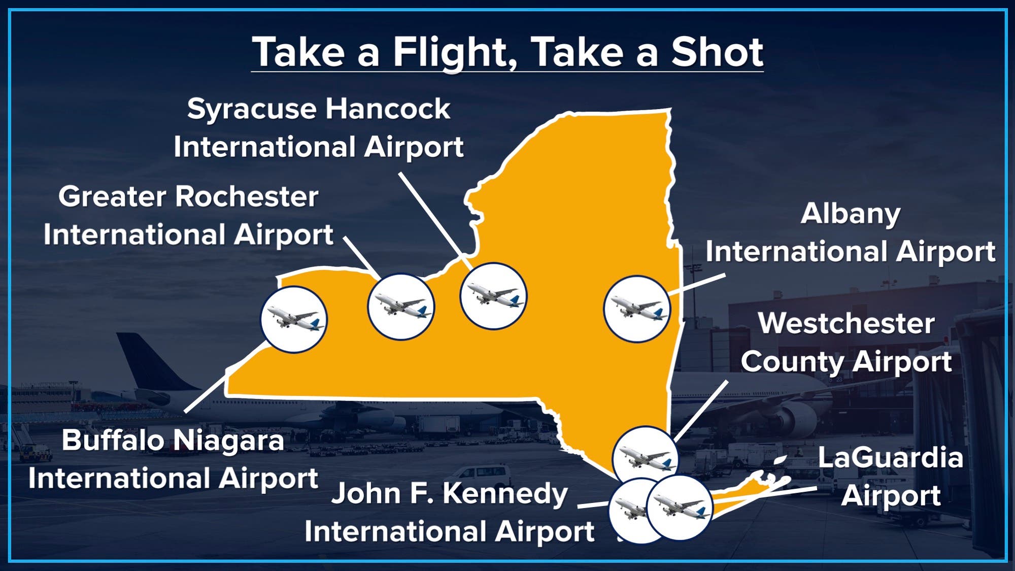 The governor also announced that beginning next week New York will offer pop-up vaccination sites at seven airports across the state for all U.S. residents arriving or departing, as well as airport workers.