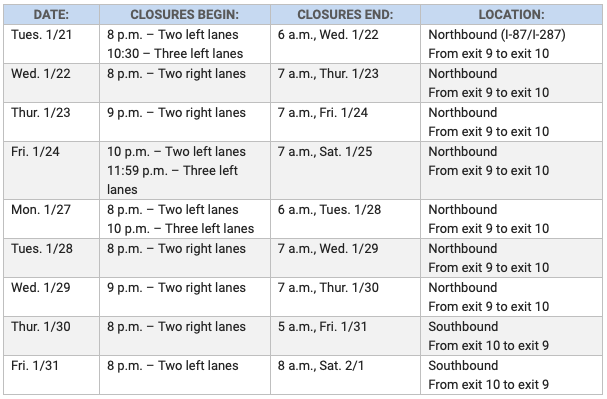 TARRYTOWN, NY — Tappan Zee Constructors, LLC is scheduled to continue overhead gantry work on the bridge this week and next week. The work will require overnight lane closures on northbound and southbound New York State Thruway (I-87/I-287) traffic lanes in the area.