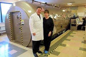 Hyperbaric oxygen therapy is a medical treatment during which patients breathe pure oxygen while sitting inside a pressurized chamber. Alone and in combination with standard treatment protocols, it contributes to optimal outcomes for patients because the therapy increases the amount of oxygen dissolved in the blood and expedites the growth of new blood vessels. This enables delivery of more oxygen to tissues and organs of the body, which promotes healing of wounds and damaged tissue.