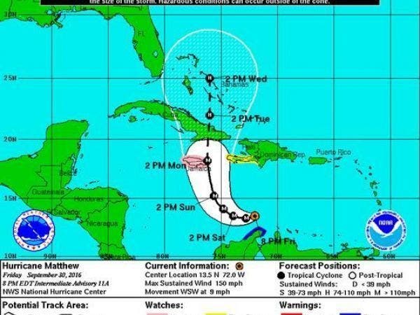Matthew briefly became a Category 5 storm Friday night before weakening slightly by Saturday morning. Matthew is the strongest hurricane to form in the Atlantic since Hurricane Felix in 2007. As of 8 a.m. Saturday, Matthew was located about 365 miles south of Haiti and moving west at 7 mph.