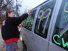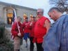 A vibrant bunch, all in crimson shirts and jackets, walked down North Broadway as dusk fell yesterday, happy to tell anyone who asked what they were up to and wave to those driving by who beeped in support. A man re-inked the words written on the side of one of two accompanying vans: “We are the 99%.”
