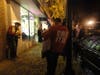 The group, which has held consistent around 15 members, made stops along the route from Albany at various Occupy events, including in Hudson where they received a day of heavy rain. In Tarrytown, on this balmy evening, they were stopping for about a half hour at the Verizon retailer more for the sign and the symbolism than the store itself.