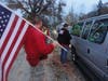 Tarrytown was a stop yesterday on the are taking from Albany to Occupy Wall Street central headquarters at Zuccotti Park for Thursday’s National Day of Action events. The group arrived in town earlier than the 5 p.m. they were slated to hang out with other local union workers in front of our Verizon Wireless retailer at 15 N. Broadway, so they waited in front of Warner Library, waving their big U.S. flag.