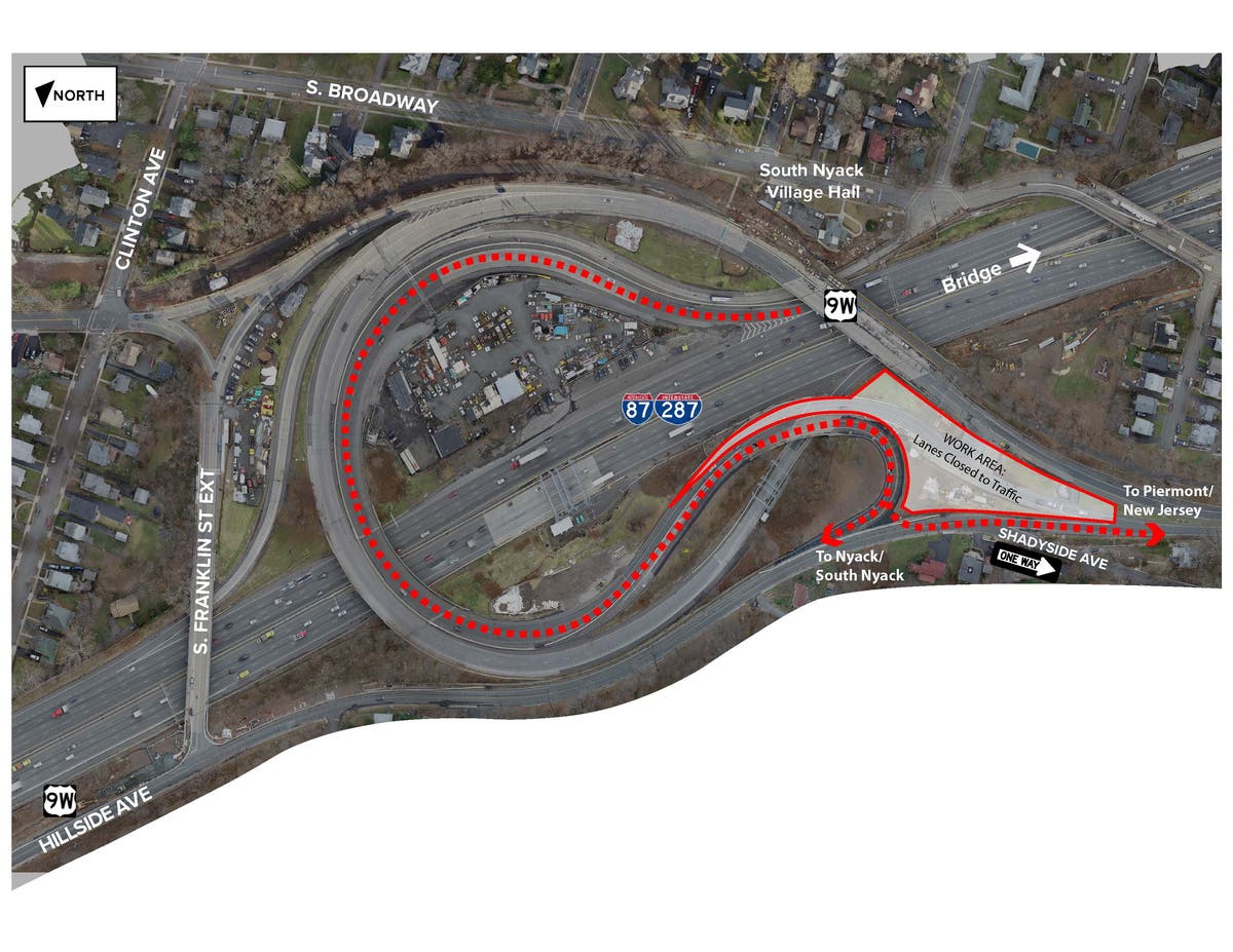 Construction of a new intersection at Hillside Avenue and Route 9W — which will provide access to the Thruway in both directions — is being facilitated with a temporary traffic pattern.