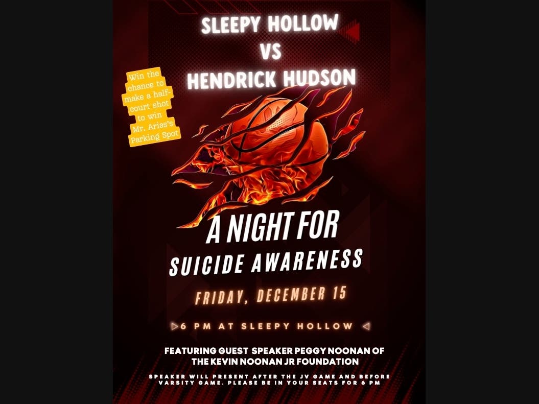 On Friday, December 15, 2023, Sleepy Hollow High School will be hosting a A Night For Suicide Awareness. Peggy Noonan will be the featured speaker and will briefly address the crowd around 6 p.m. after the JV game and before the Varsity game, where the Horsemen will play against Hendrick Hudson.