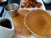 The brunch menu, though interesting, didn't offer what our taste buds were in the mood for. No problem. We asked for an omelet of our own choosing, and after Kaitlyn asked, the chef was very accommodating to change up the menu for us. We ordered a grilled asparagus, bacon, cheddar egg-white omelet, whole wheat toast, with paprika potatoes and pancakes with maple syrup (it actually says maple syrup on the menu). The omelet was small in size, but large in flavor. A very fluffy egg-white omelet is an art and this one had it. Even the bacon inside was cooked to crispy perfection.