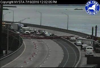 On Tuesday, July 19, a pylon-driving boom located on the new bridge fell across all six lanes of the old Tappan Zee Bridge.