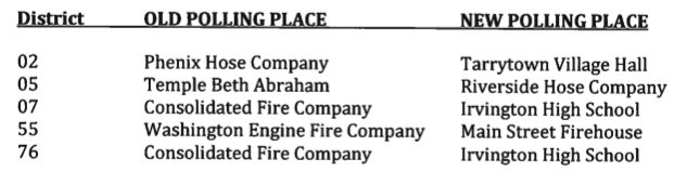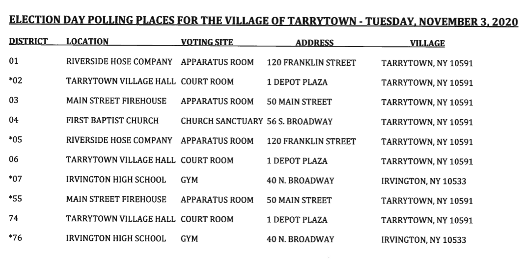 TARRYTOWN, NY — Voters in the village of Tarrytown who plan on showing up at the polls Tuesday to vote need to be aware that some polling sites may be different from years past.