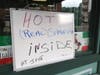 The whiteboard sign in the window however conveyed a slightly different sentiment: "Hot (real) sandwiches inside."