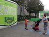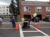Then on Saturday, the meat product company really took over one part of town with a sandwich-giveaway operation in the lot across from Village Hall, on the sidewalks, and even...the street.