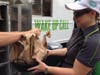 Dressed in Jennie-O shirts, hats, and even umbrellas for the bit when it was raining, company workers handed out paper bags with egg, cheese and turkey-meat sandwiches to drivers passing by the end of Beekman.