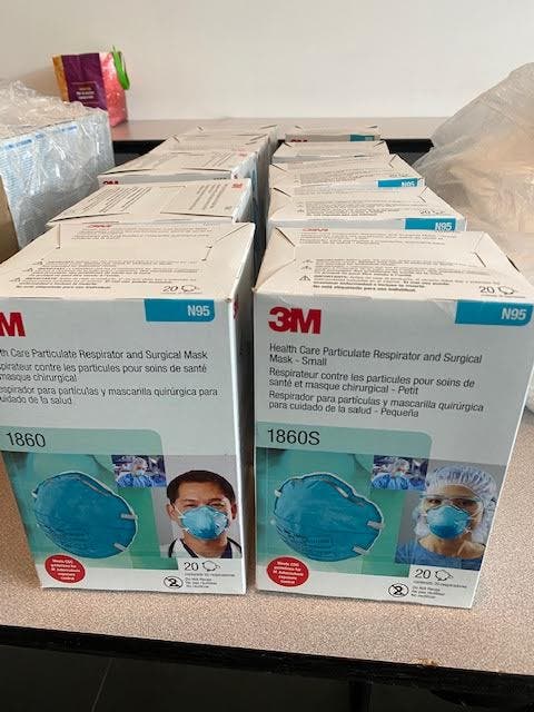 - PPE donations, including N95 3M 1860 masks and other masks, protective eye-wear, goggles, gloves and face shields, including 3D-printed frames.