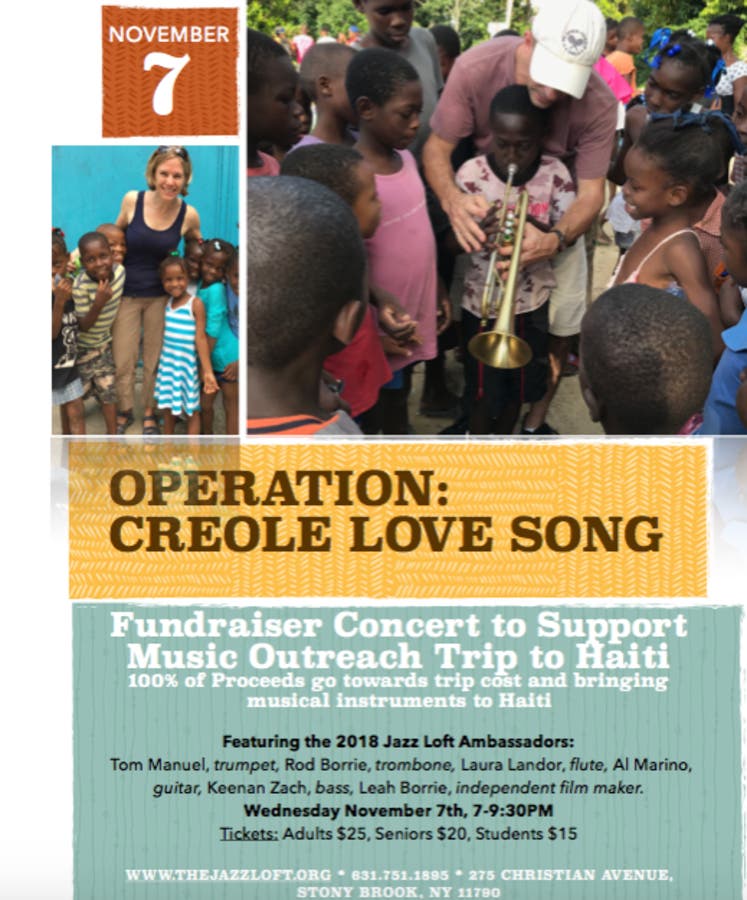 The concert supports the work begun a few years ago to bring a music program to a school in Bizoton, Haiti. Donations of used instruments,canned food and school supplies have collected at The Jazz Loft and sent on to Haiti. The fundraiser will offset the cost of the trip and pay for additional instruments and supplies. The Jazz Loft Ambassadors will be returning to check on the progress of their students. Further lessons and a concert by the students are planned. Both students and teachers will experience the joy of making music together.