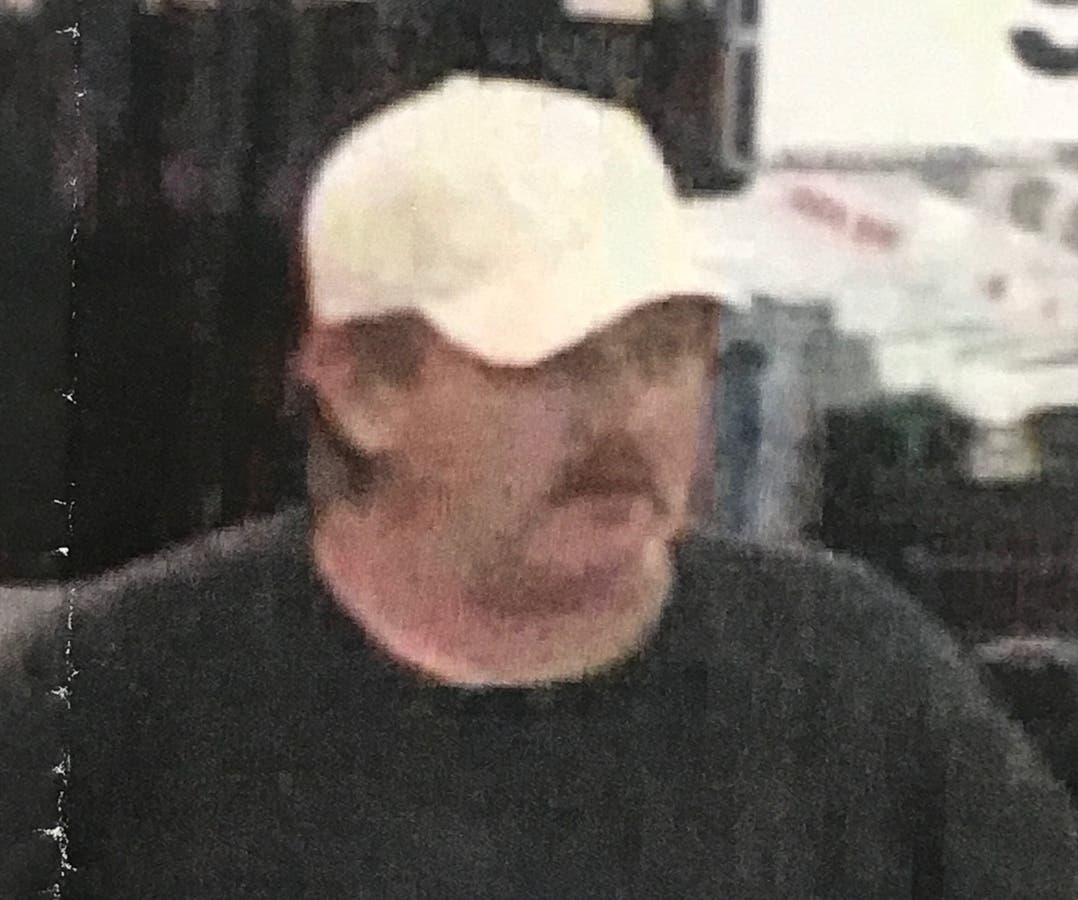 The man is described as heavyset, 40 to 50 years old, mustache, wearing tan cargo shorts and a baseball cap.