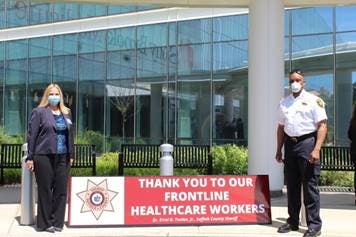 "We wanted to say thank you, because you are our heroes," he said. "You are coming to work every single day, dealing with issues that are unimaginable, and taking patients from all different areas. We want you to know that we love you, we honor you, and we thank you for everything that you do every single day."