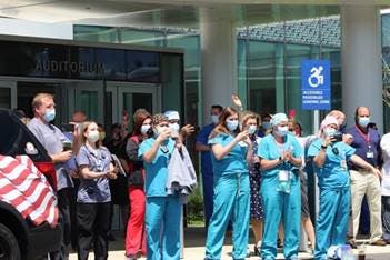 The parade, which included vehicles, trucks and motorcycles, drove past the facility on Lauterbur Drive. Hospital staff viewed from the front of the building and from the many windows of the floors above.
