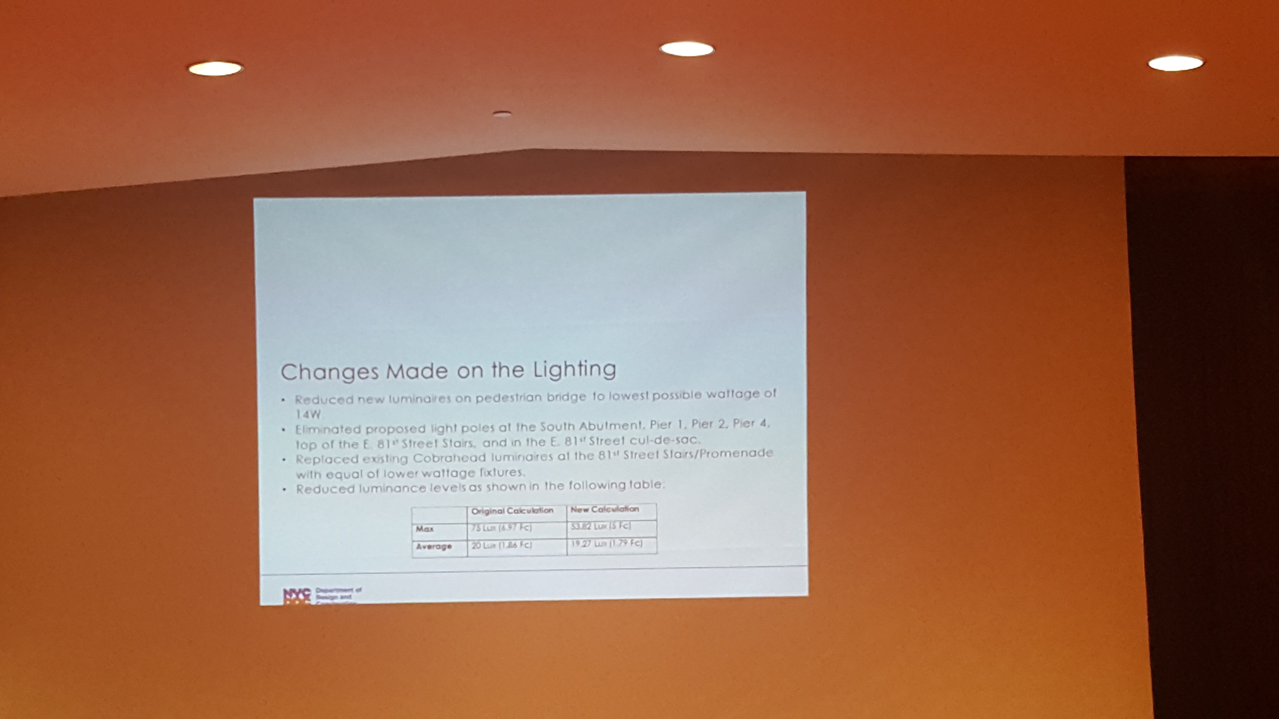 Responding to concerns that the lights on the new pedestrian bridge would be too bright and spill into nearby buildings, the city is now planning on reducing bridge luminaries to the lowest allowable wattage, Esposito Bernard said.