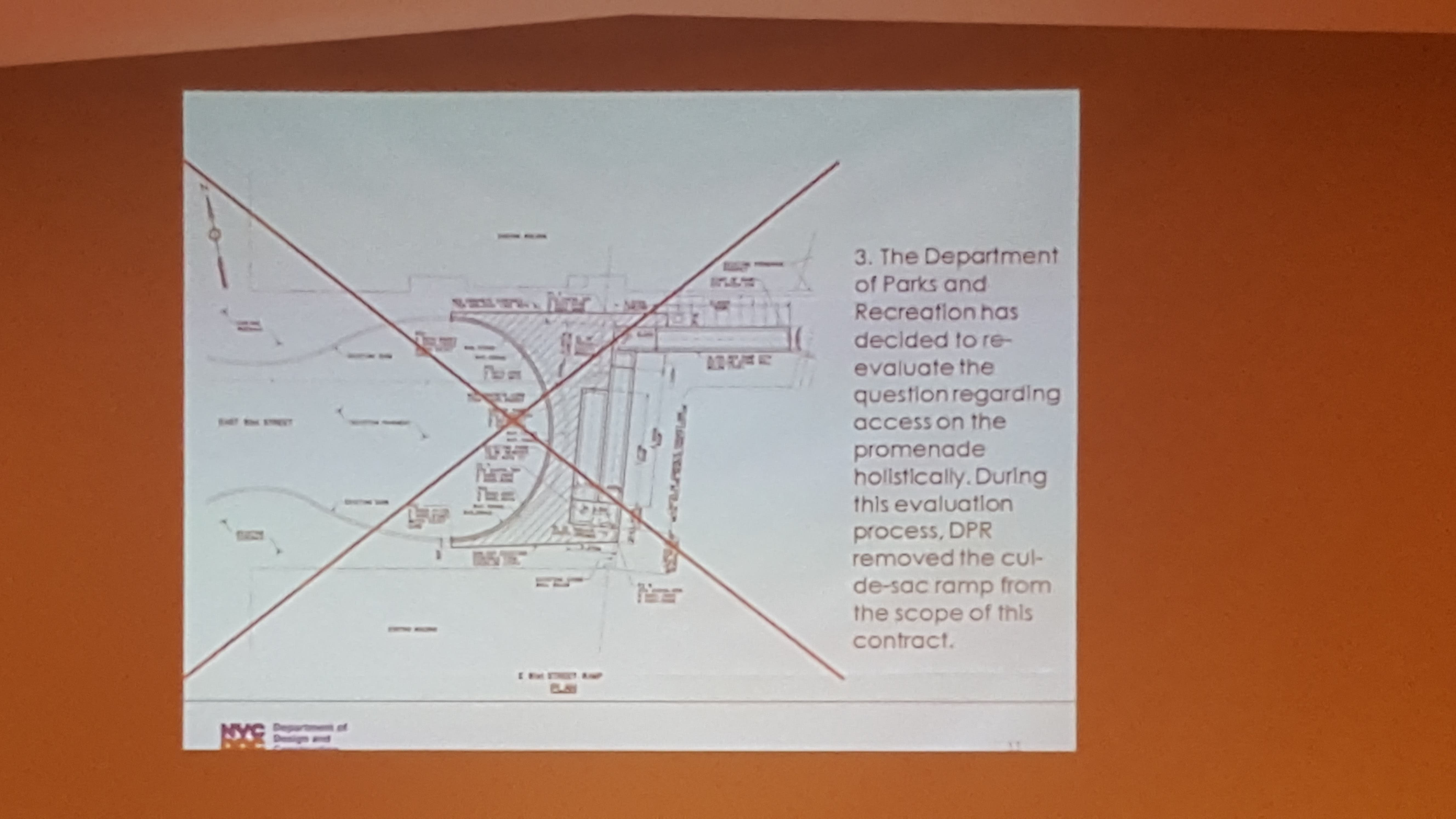 The city parks department will go back to the drawing board to figure out how to best provide handicap access to the esplanade, said Steve Simon of the parks department. Whether that means redesigning the proposal on East 81st Street or moving the ramp to another area such as East 82nd Street or East 84th Street has not yet been determined, Simon said.