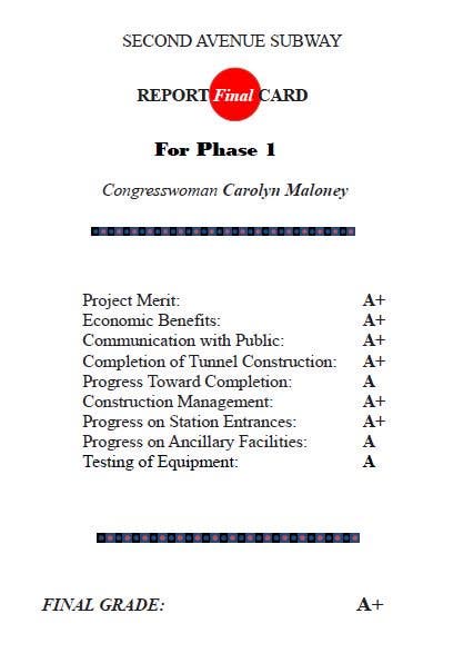 On her final report card Maloney gave the MTA an A+ overall, but also in six of nine specific criteria.
