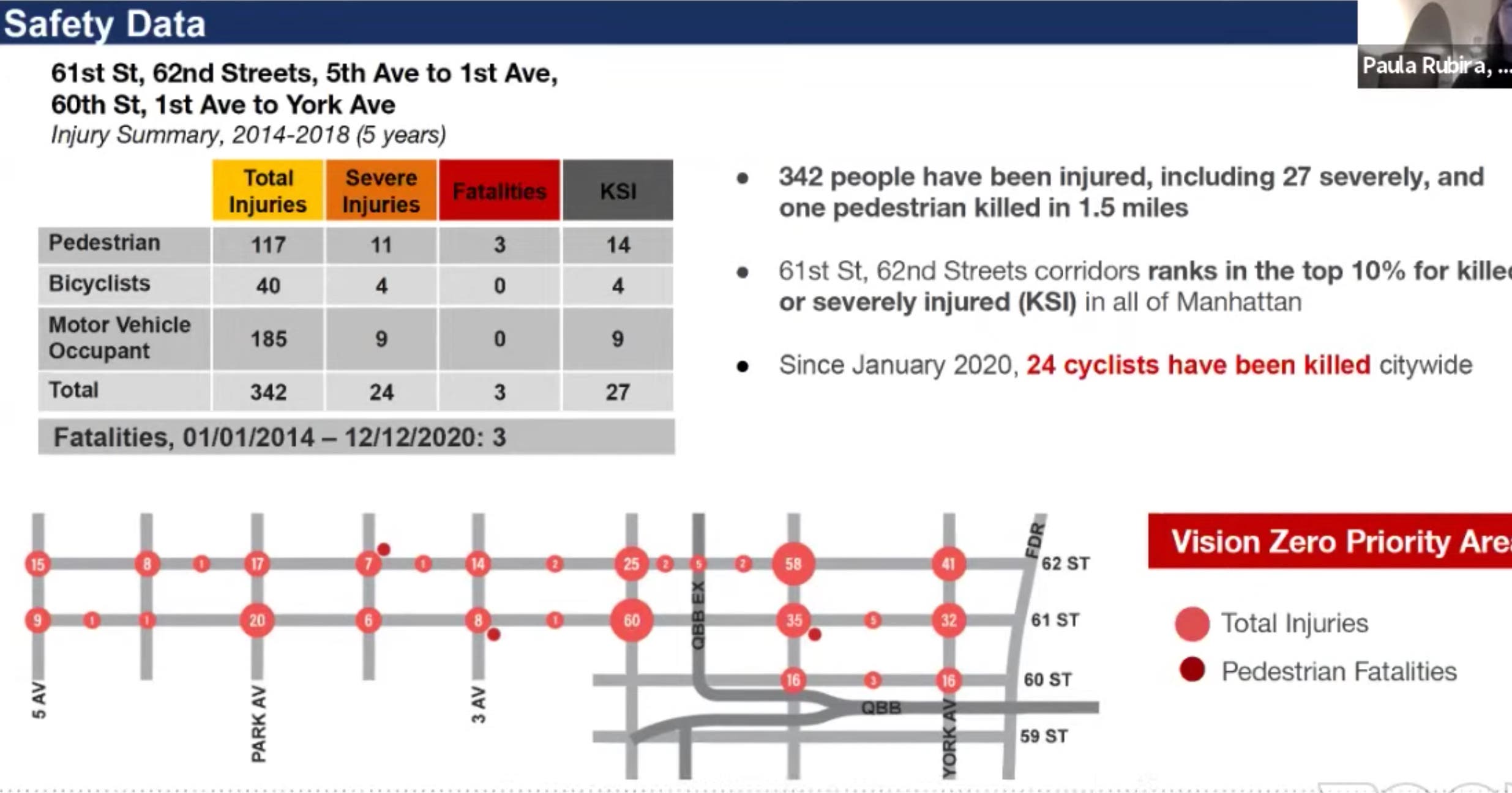 Indeed, 61st and 62nd between Fifth and First avenues have ranked among the borough's most dangerous: three people have been killed and 24 have been seriously injured there since 2014, putting it in Manhattan's top 10 percent in those categories, according to DOT data.
