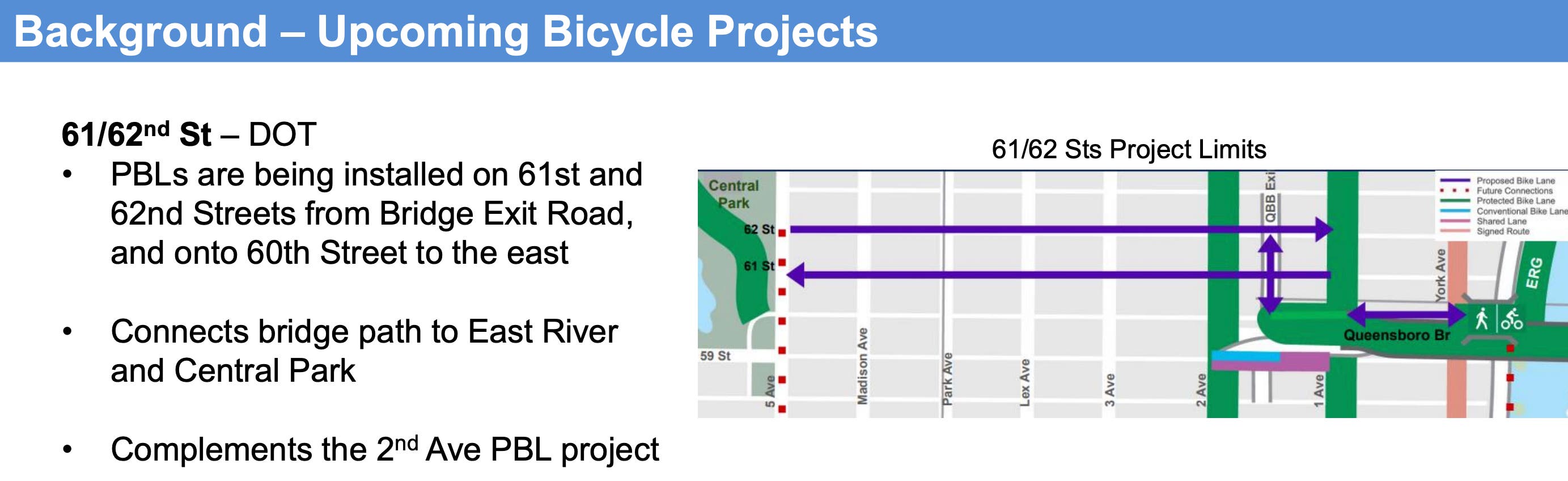 UPPER EAST SIDE, NY — An Upper East Side community board got its first glimpse this week at the soon-to-be-installed bike lanes across the Queensboro Bridge, which were announced this winter after years of demands by advocates.