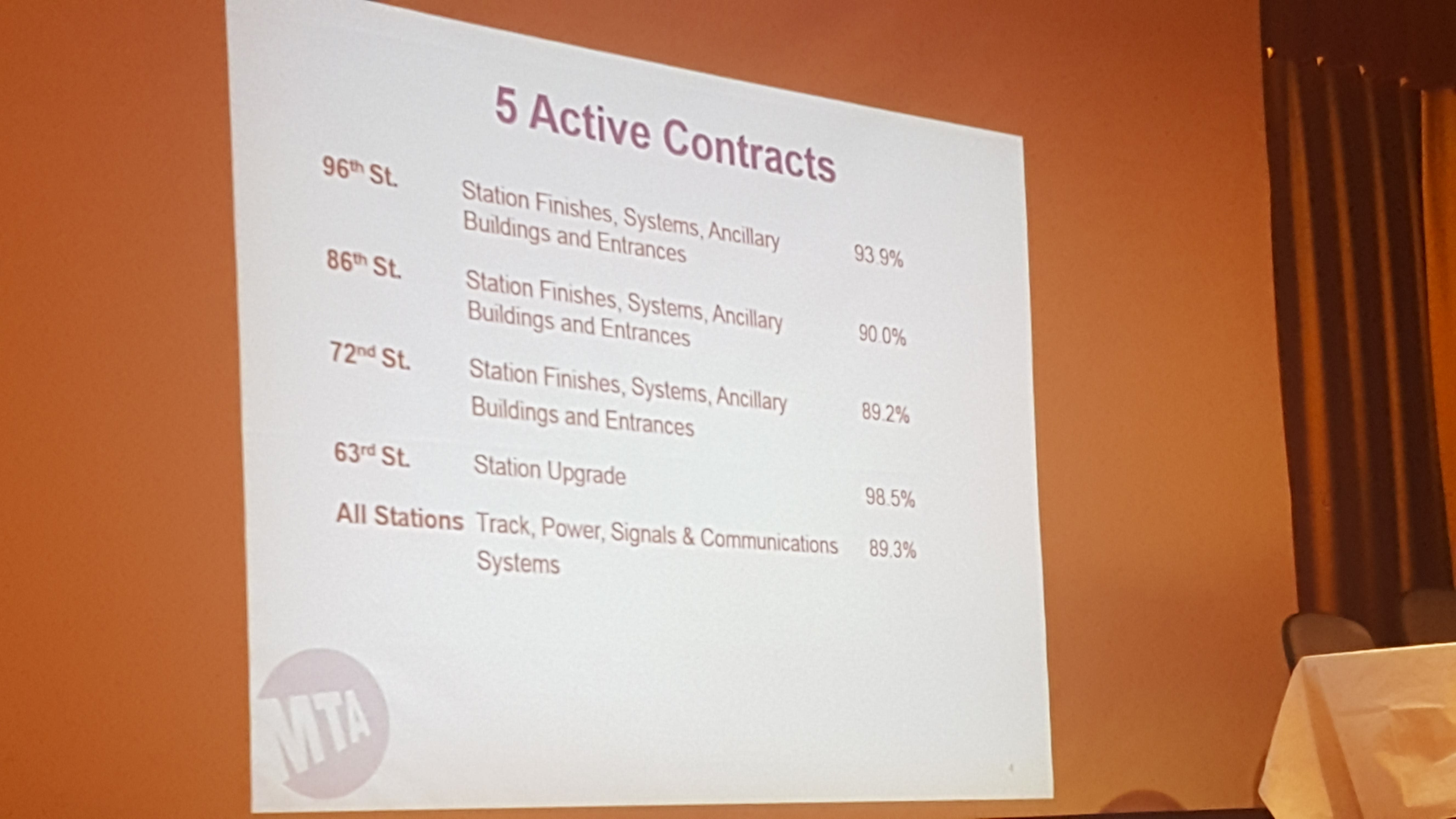 MTA Construction officials gave project updates at a Thursday night meeting of Community Board 8's 2nd Ave Subway Task Force.
