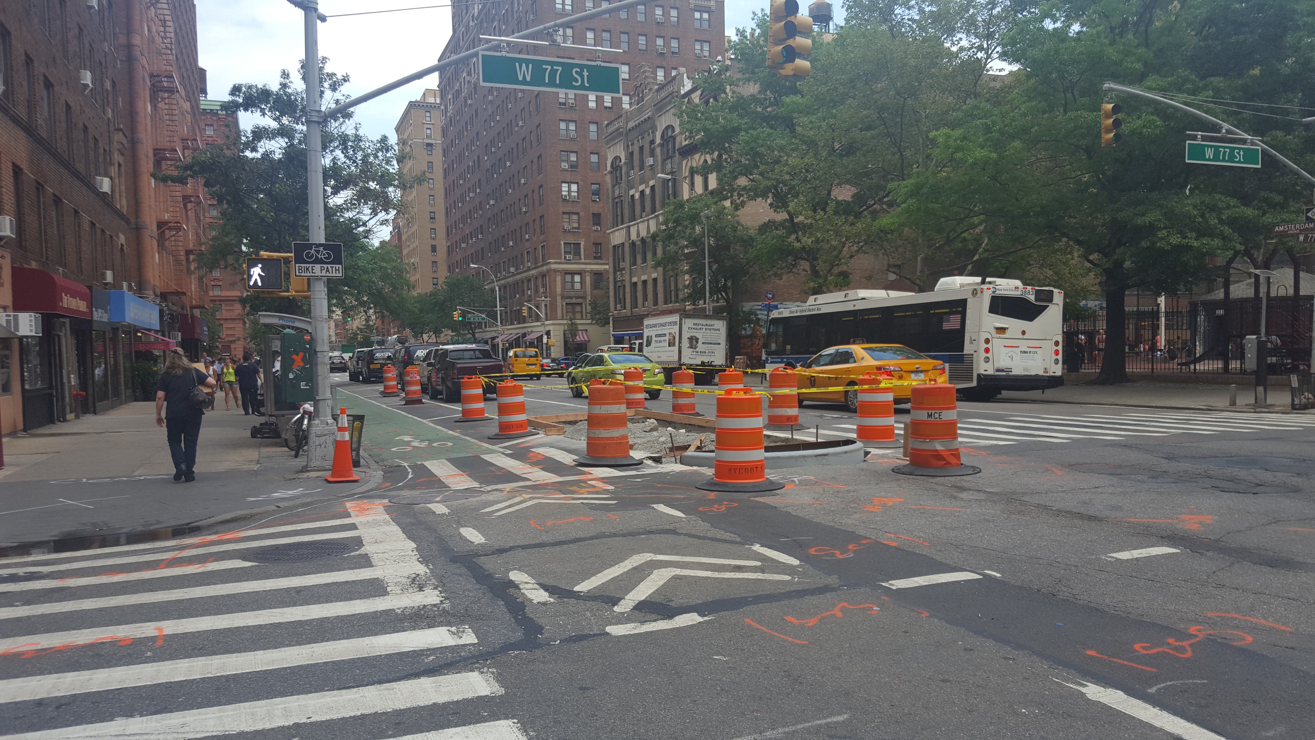 As of Tuesday, the Amsterdam bike lane has been constructed between 76th and 96th street, said Colleen Chattergoon, a spokeswoman for the DOT. Eventually the lane will reach 110th Street.