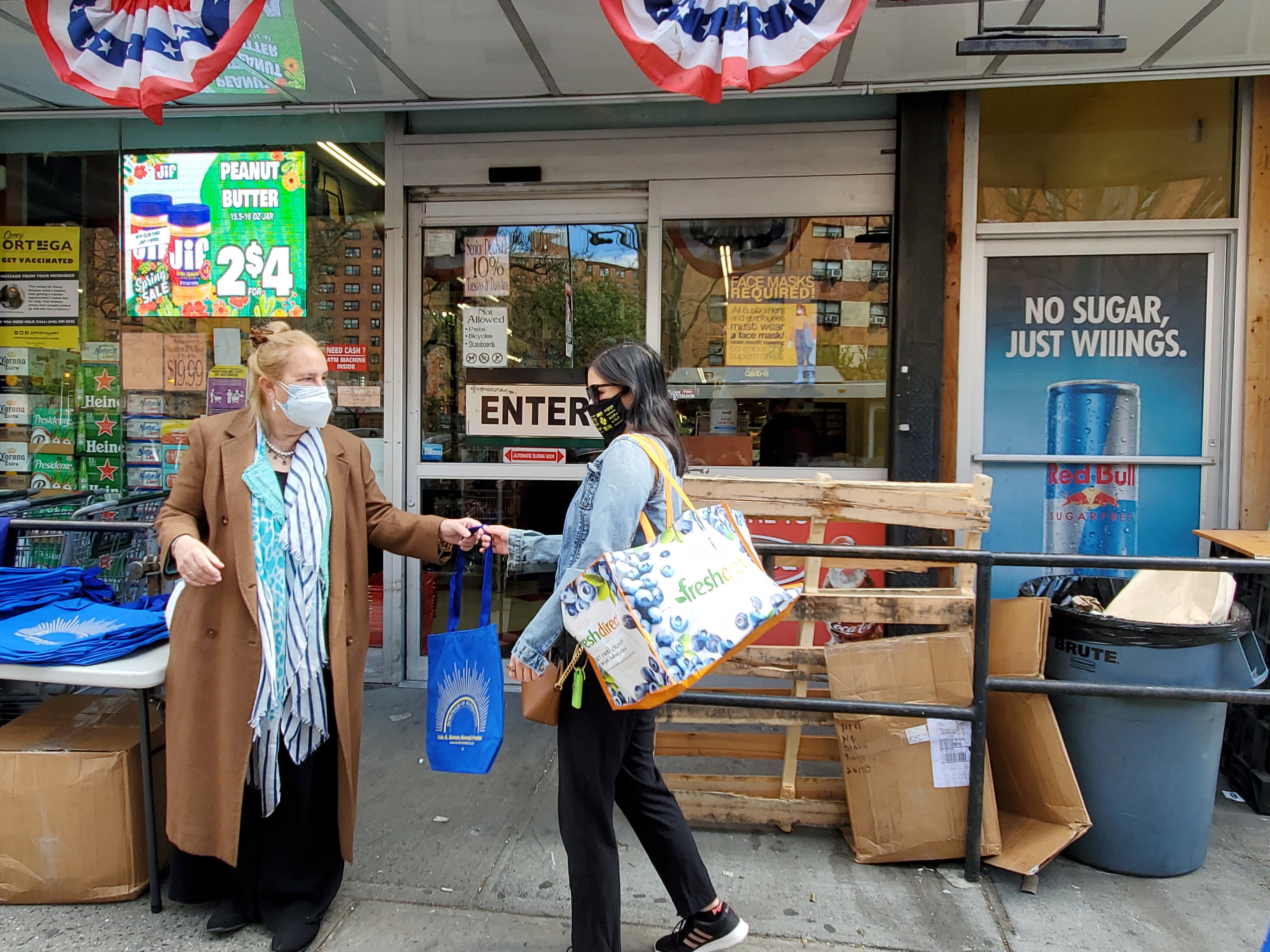 Brewer is handing out the bags in her capacity as Manhattan Borough President, but she is also a candidate for the City Council seat on the Upper West Side.